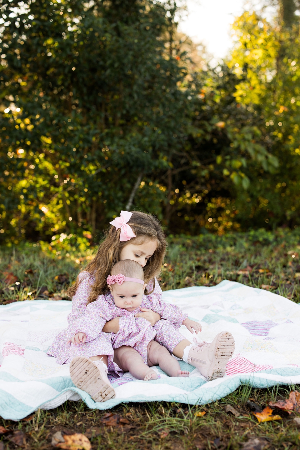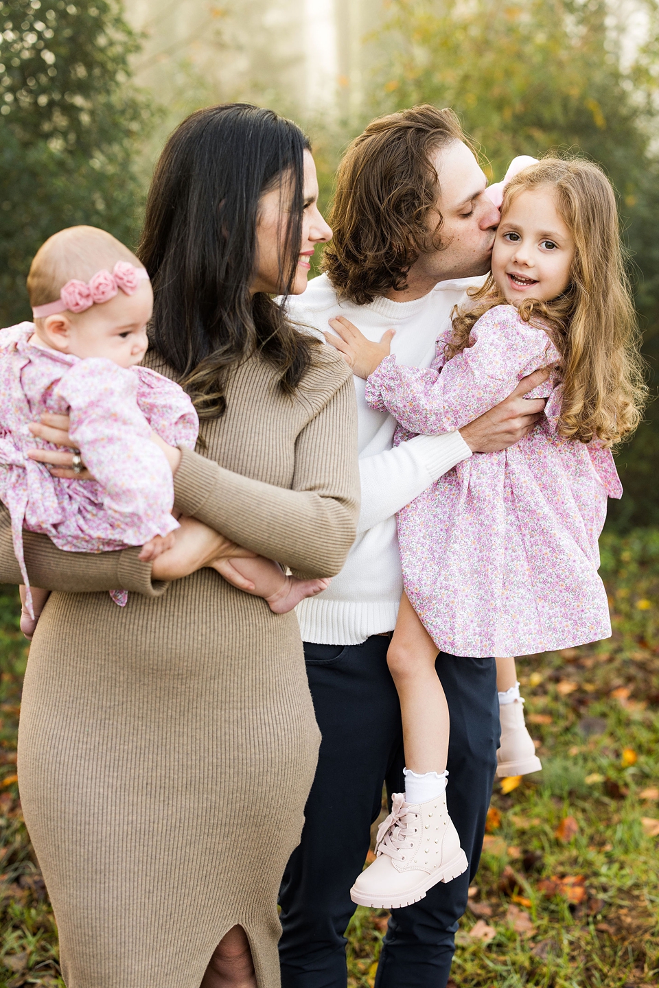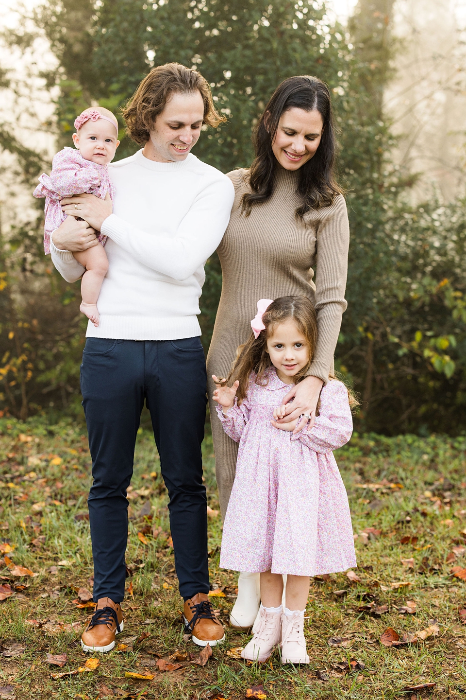 I have loved photographing this sweet family over the last 4 years. I have photographed them before the girls were born and I have loved watching the girls grow up in front of my camera. This was take two for this session because the first date we scheduled we showed up and it started pouring!! Thankfully we had a beautifully, chilly fall morning that ended up being perfect!! Love how the fog started with us during the session and then dissipated as our time together went on. So excited to share a few of my favorite images from my time with these four!!